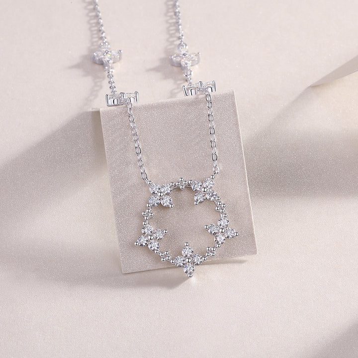 Shine with timeless elegance. The Iris Luxe Glow Necklace features brilliant Moissanite stones set in premium S925 sterling silver with a platinum finish. Its delicate star-inspired design captures light beautifully — a perfect symbol of grace and confidence.