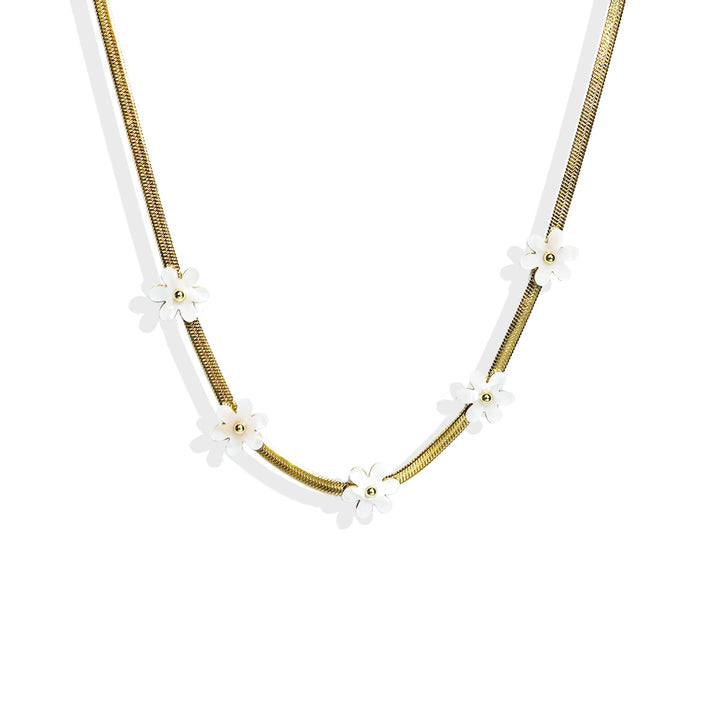 Radiant, graceful, and consciously crafted — the VAVO Lxalry 18K Gold-Plated Bohemian Floral Necklace blends effortless beauty with mindful design. Featuring delicate white blossom charms, this modern minimalist piece captures a timeless boho spirit, making it perfect for both everyday wear and festive occasions.